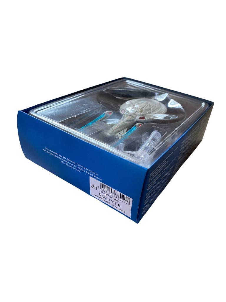 Diese Enterprise entstand für Star Trek: Der erste Kontakt und sollte eleganter, moderner, aber auch gefechtstauglicher als ihre Vorgängerin wirken. Jedes Mal, wenn diese Enterprise auftauchte, waren kleine Veränderungen zu bemerken, und das Sammlermodell nimmt die CGI-Fassung des Raumschiffs als Vorlage, die bei Star Trek: Der Aufstand zum Einsatz kam.
